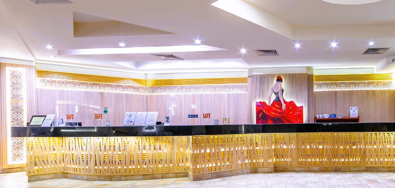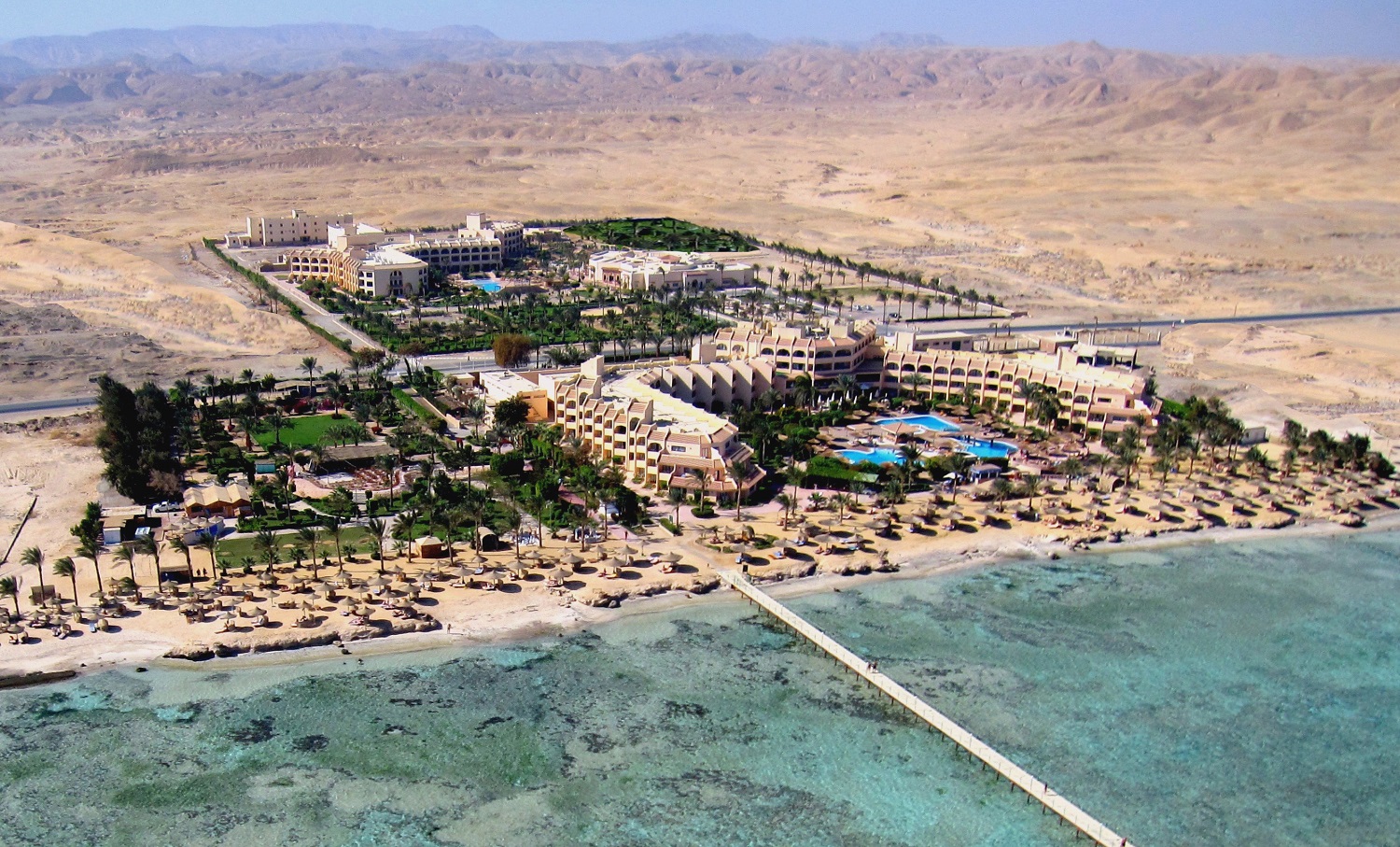 The Resorts are situated directly on the Red Sea, miles of turquoise waters, pristine shorelines flanked by majestic mountain chains and some of the most spectacular and easily accessible Coral Reefs anywhere. The Flamenco Beach & Resort has one of the most beautiful house reefs in the area, easily accessible over a 200 meter long jetty which was built to protect the corals inviting you to enter the sea for swimming, snorkeling and diving. Additionally the Hotel offers Shuttle bus service (with charge), to a nearby natural bay, where one can also swim and snorkel. The International Airport Hurghada is located 120 km (2 hours transfer) north and the new Airport of Marsa Alam 65 km (45 minutes) south of the Hotels. The city of El Quseir is 6 km away and can be reached with the Hotels shuttle bus. The hotel buildings are in the very beautiful and spacious garden area of approx. 20’000-sqm, offer guests a warm and relaxing surrounding with “family atmosphere.” One can also find shops and bazaars adjacent to the hotels.