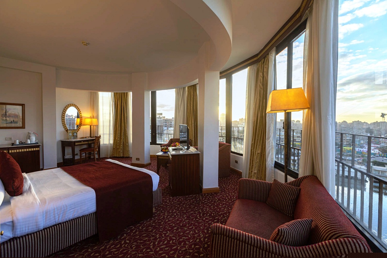 Executive rooms have comfortable and pleasant furnishing with warm elegant colors and fabrics. Staying at the Golden Tulip Flamenco Cairo Hotel on a business trip or on holiday you will enjoy the calm and elegant atmosphere. The executive rooms are specious and perfect if you plan to stay several days or longer. These rooms have a good view of the Nile River with comfortable work desks and sitting area. The room is equipped with bath/shower, W–LAN, satellite-TV, telephones, safe, air-conditioning, mini-bar and hair dryer. The rooms are comfortably large over 36 sq. meters.