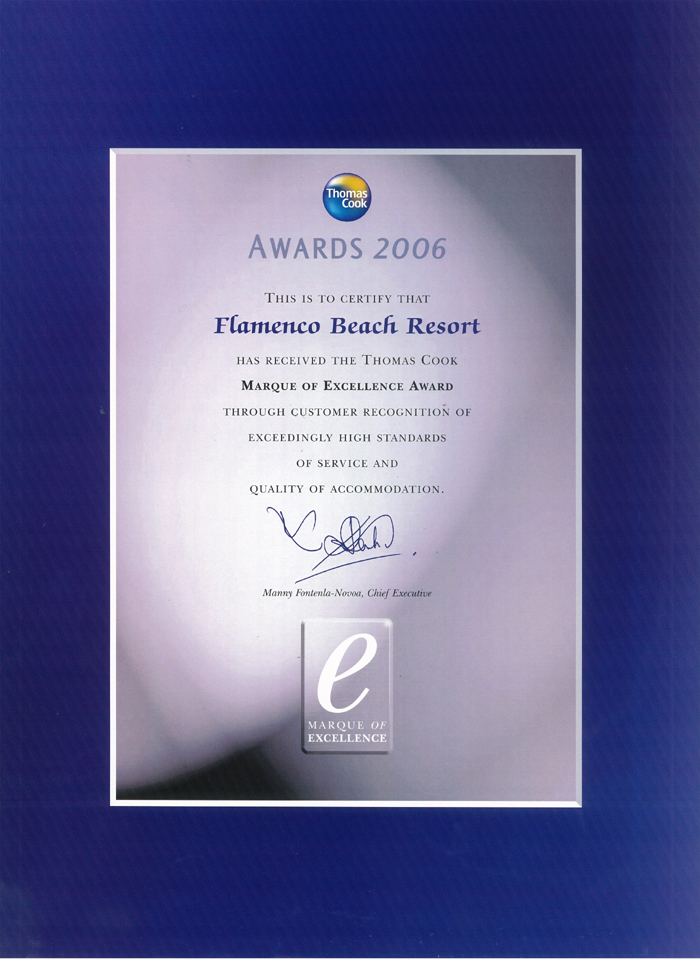 Recipient of the Marque of Excellence Award 2006 by Thomas Cook