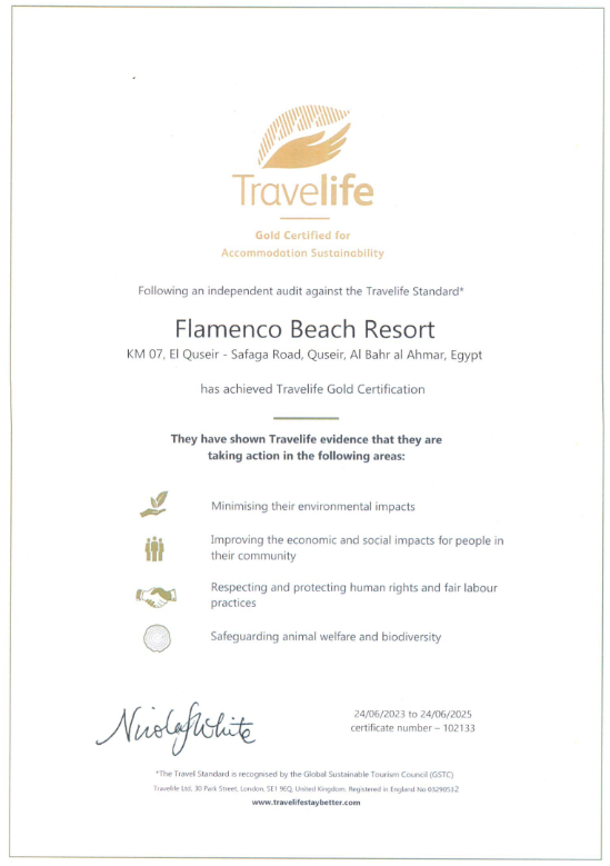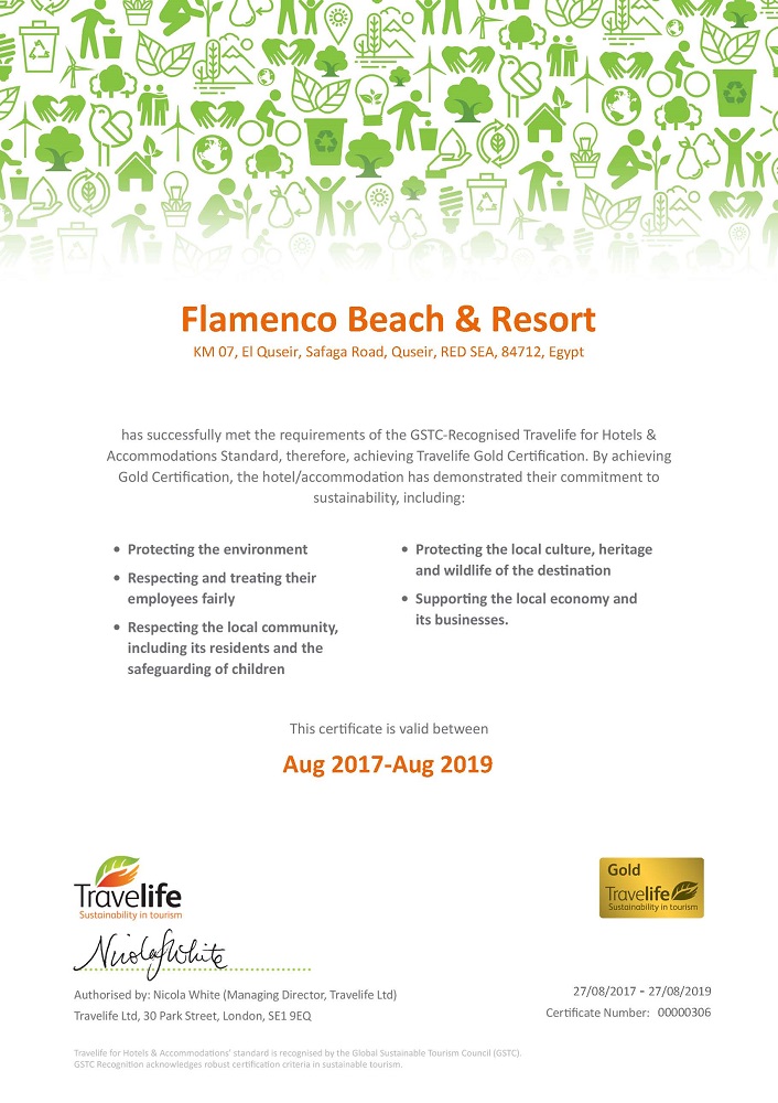Flamenco Beach and Resort El Quseir is pleased to receive a TripAdvisor Certificate of Excellence